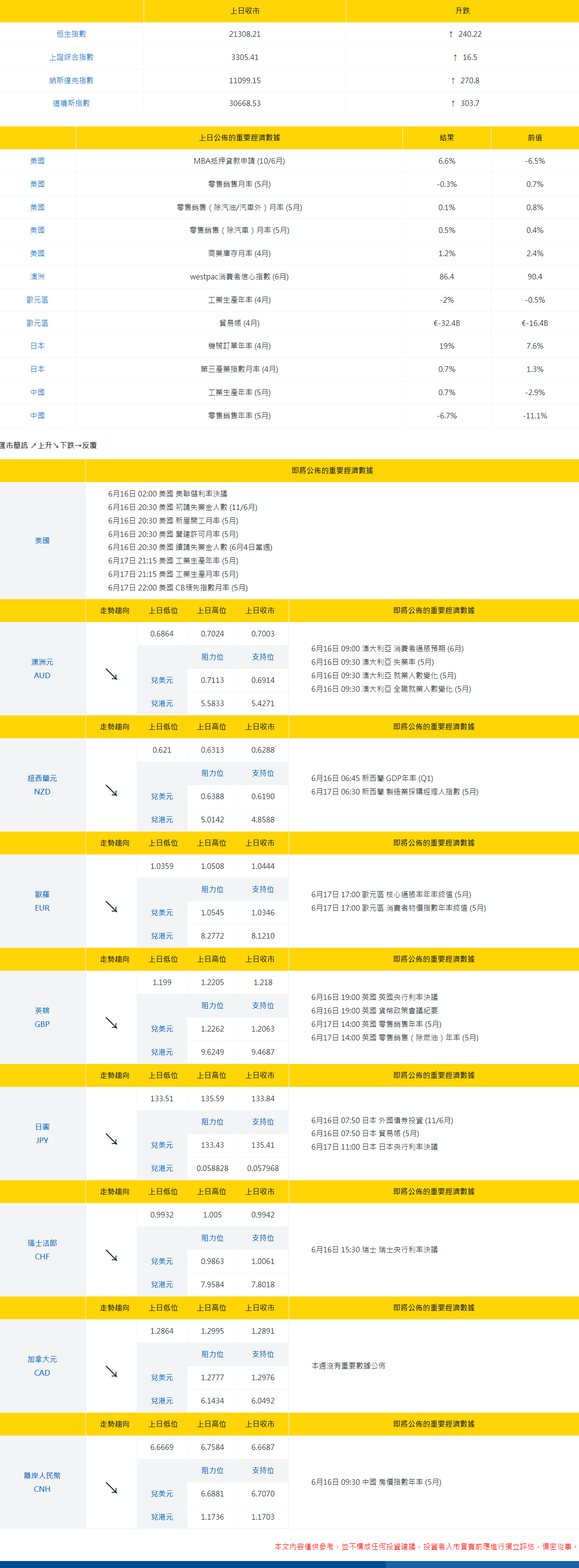 大丰银行:今日外汇走势分析和投资策略(2022年6月16日)