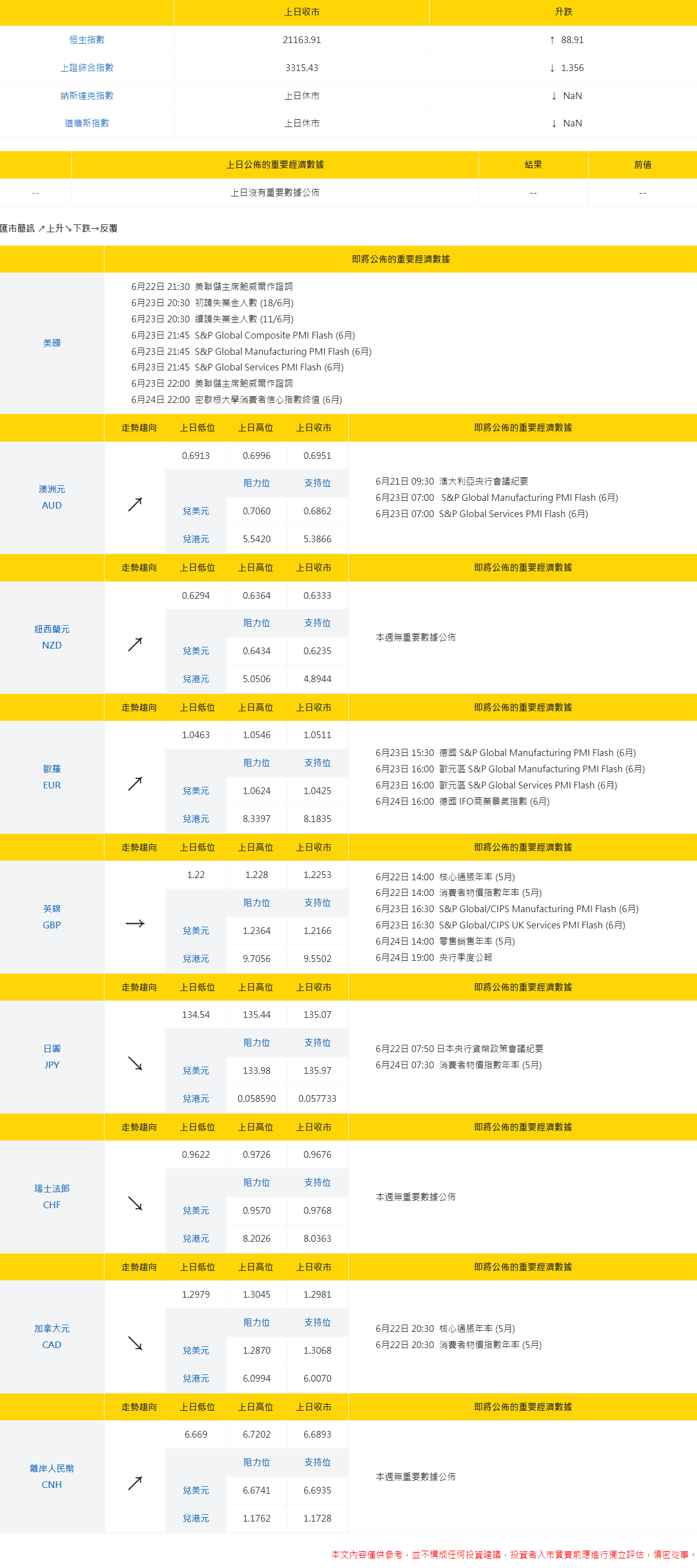 大丰银行:今日外汇走势分析和投资策略(2022年6月21日)