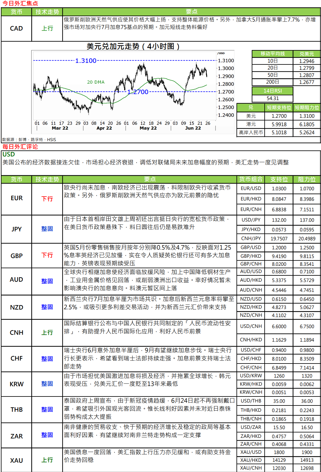 · 从周一开始一连三天,欧央行将于葡萄牙开周年大会。此大会有点类似联储局的 Jackson Hole,是个重要日子。届时欧央行行长拉加德、联储局主席鲍威尔及英伦银行行长贝利将会同时在大会上发言。市场最关注是欧洲面对着 8.1%高通胀率下,有何方法应对。另外于本周五,欧元区将公布其 6 月通胀率,数字是继续升还是回落,同为市场焦点所在。按利率期货市场估计,为压抑通胀,到今年底欧央行或要把现时负 0.5%息率提高至 0.75%,即于未来半年内加息 1.25%.