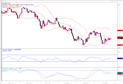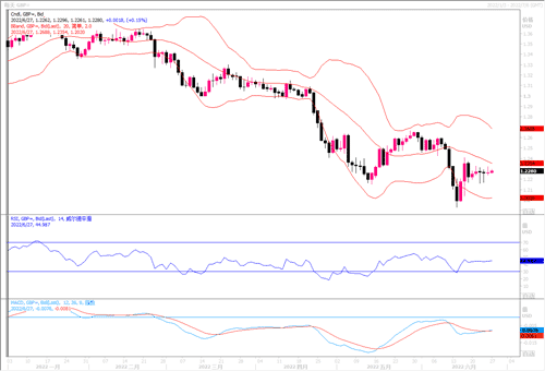 欧元/美元周五上涨0.33%,这主要是美元兑其他主要货币周五下滑,且可能创本月以来的首次周线下跌。 投资者评估美国联邦储备理事会(美联储/FED)的政策路径,以及激进的加息是否会引发经济衰退。欧美方面,上周四欧美价格总体呈现下跌的状态。当日价格最高于1.0580位置,最低于1.0482位置,收盘于1.0520位置。回顾周四欧美表现,早间开盘后价格短线先震荡,随后价格快速下跌,经过震荡运行后,周五再度收阳,结合目前总体看欧美还是呈现多头,价格的下跌仅仅是修正,并且目前处于区间震荡,我们暂时重点关注1.0490-1.0500区间支撑,上方重点关注1.0570-1.0650区域。若欧美能突破布林带中轨1.0630水平的压制,上行可期。