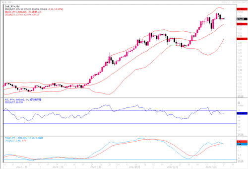 美联储主席鲍威尔在众议院做半年度货币政策证词时表示,美联储关于抗击美国高通胀的承诺是无条件的。鲍威尔表示,当美联储的加息大幅放缓经济时,不会转为降息,而是需要看到通胀明确下降才会转向。市场对美联储加息前景重新定价,预计美联储在2022年剩余时间里的加息空间为175个基点,前面加息越激进,加息周期结束越早。在各国致力于抗击高通胀之际,经济表现乏善可陈,可能继续伤害市场风险偏好情绪。不过,如果市场对美联储刮骨疗伤很快结束的预期升温,将有望削弱美联储激进加息对经济损害的担忧,美元有望向下突破,从而为其它非美货币提供间接支持。但短期内,息差幅度的进一步拉大,无疑仍将是抑制日元表现的重要影响因素。技术图形上,日图自高位有所回落,随机指标熊背离,但料MA20提供支持。4小时图在继续震荡下行,维持在135.40下方仍有一定的下行空间。小时图下方测试MA200,当前仍偏弱势。下方留意134乃至133之间区域的支撑。