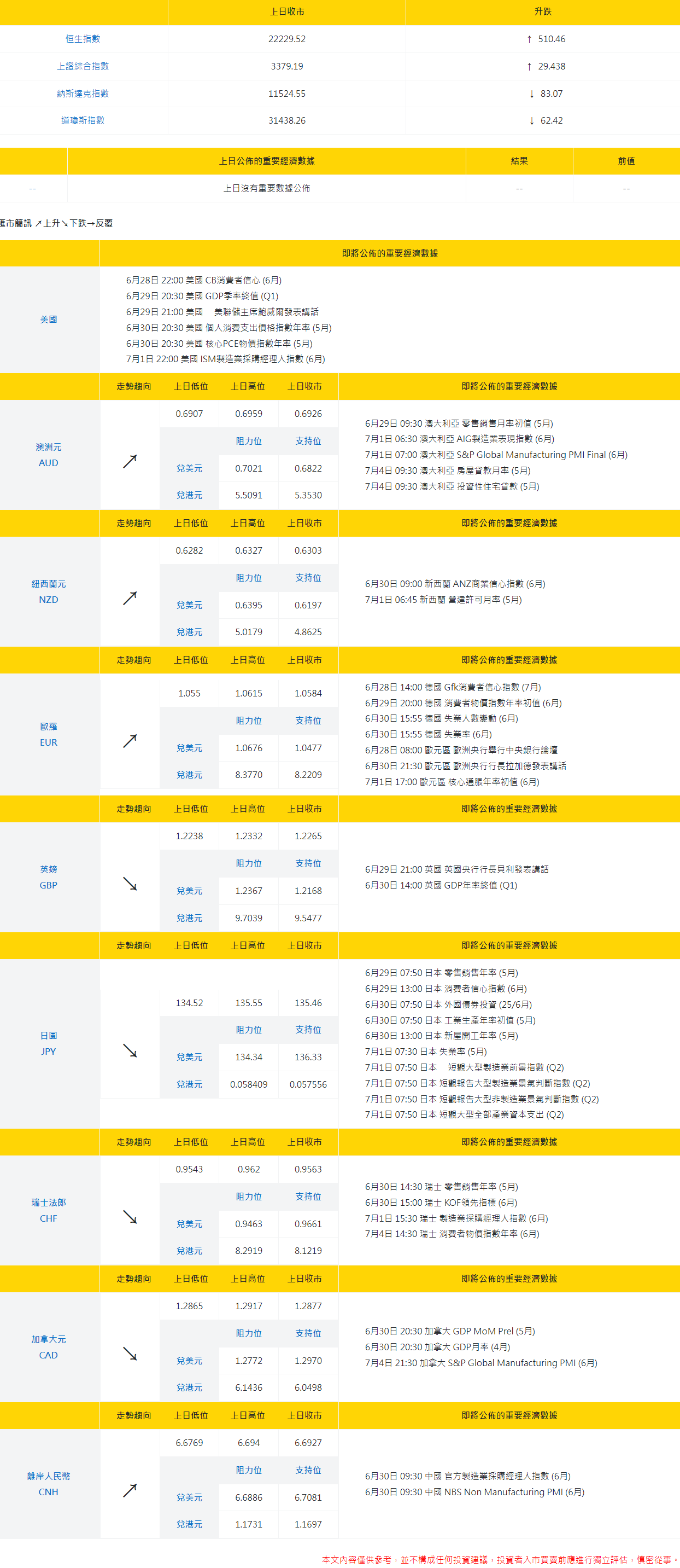 大丰银行:今日外汇走势分析和投资策略(2022年6月28日)