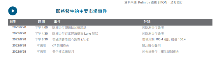 尽管美债收益率略微走高,但美元在较淡静的市场交投中微跌。美国消费者信心调查为主要值得关注的数据,随着G7 峰会结束、市场将聚焦於欧洲央行年度论坛与即将开始的新一轮美伊核协议谈判。美元指数应在 103.40 附近获得支持,与欧元兑美元阻力位 1.0630 一致。欧元可能会发现在 1.0775-1.0825 附近的强劲阻力难以突破,潜在的地缘政治风险升级可能导致投资者趁升势沽出欧元。