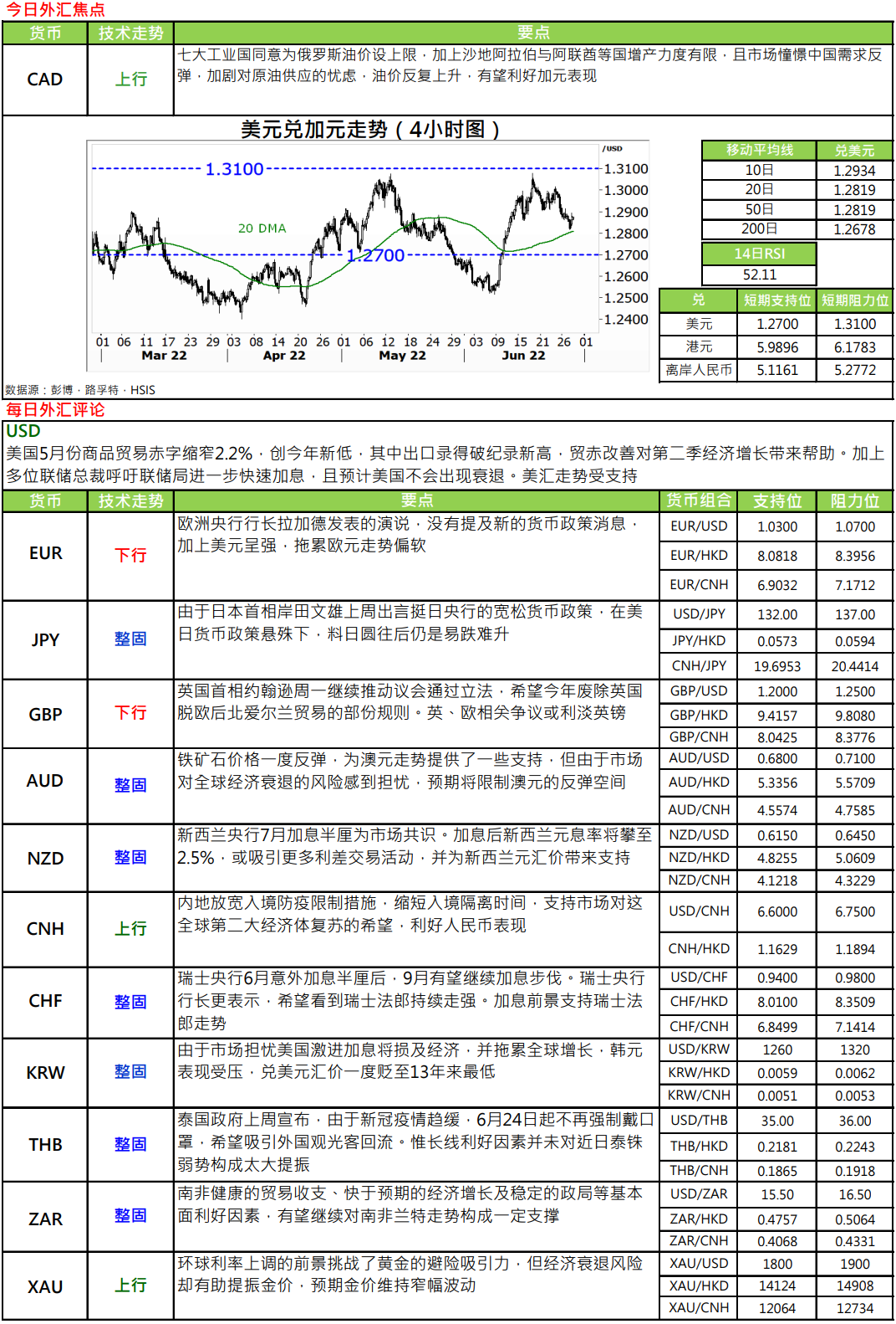 · 德國 7 月 GfK 消費信心指數按月續挫至負 27.4,較前值下跌 1.2 個指數點,再創歷史新低,市場原先預期為負 27.7,數字反映經濟衰退擔憂正持續打擊消費者信心。至於 6 月份經濟預期指數則由前值的負 9.3 續降至負 16.4.期內,收入預期及購買意願指數則分別為負 33.5 及負 13.7,反映俄烏危機持續所帶動的能源及食品價格升勢,或使消費前景更加黯淡。