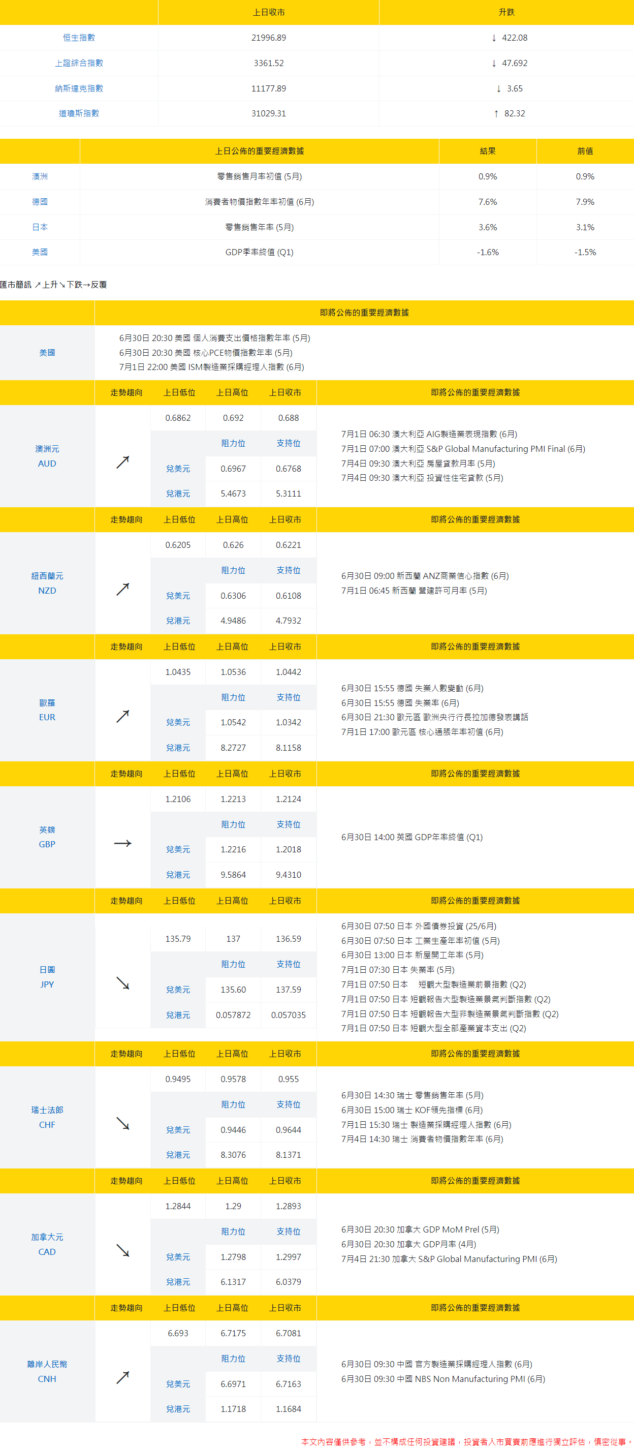大丰银行:今日外汇走势分析和投资策略(2022年6月30日)