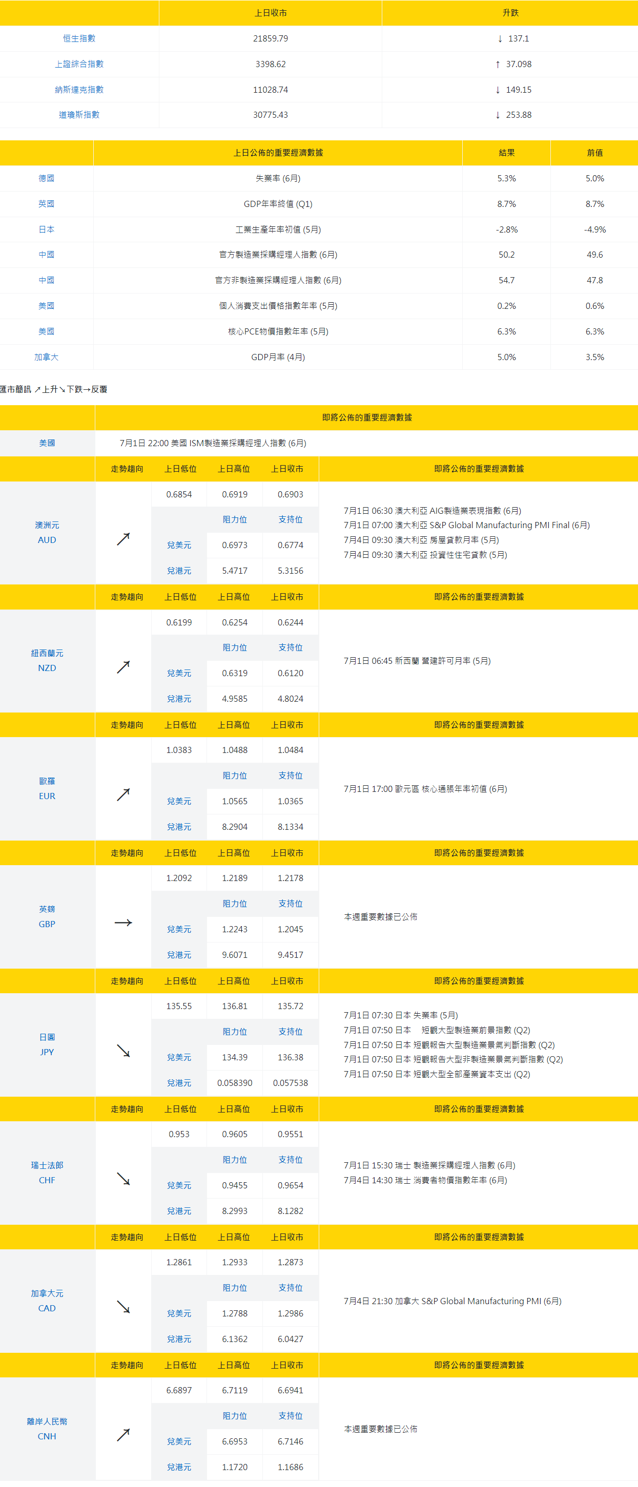 大丰银行:今日外汇走势分析和投资策略(2022年7月1日)