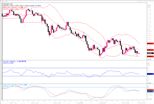周一(7月4日),欧盟统计局公布最新数据显示,欧元区5月份PPI同比和环比均有所回落,5月PPI同比增长录得36.3%,低于预期的36.6%和前值37.2%;环比录得0.7%,低于预期的0.9%和前值1.2%。虽然数据有所回落,但欧元区的通胀行势仍然高企。而且近期公布的CPI高速增长,已创下历史最高水平。欧元区通胀率的继续冲高,或为欧元区央行计划的本月加息提供了坚实的理由,这也将是欧洲央行近十多年来的首次加息。央行行长拉加德在上周举办的欧洲央行论坛上也重申7月加息25个基点的计划,并表示如果通胀率继续创纪录,将准备进一步行动。经过低走后的欧元今日在低位区间徘徊,似乎也在等待着欧央行的加息举动。如果欧央行仅仅温和的加息25个基点,那么对于欧元的抬捧作用将是微乎其微的。因此,欧元的弱势也将难以寻得扭转的机会。4小时图上,欧元兑美元进入低位整理走势,波动幅度偏窄,技术指标处在负向区域,指向不明朗。下方密切留意6月中到过的低位1.0359的支撑,若破位将加深下滑的幅度。