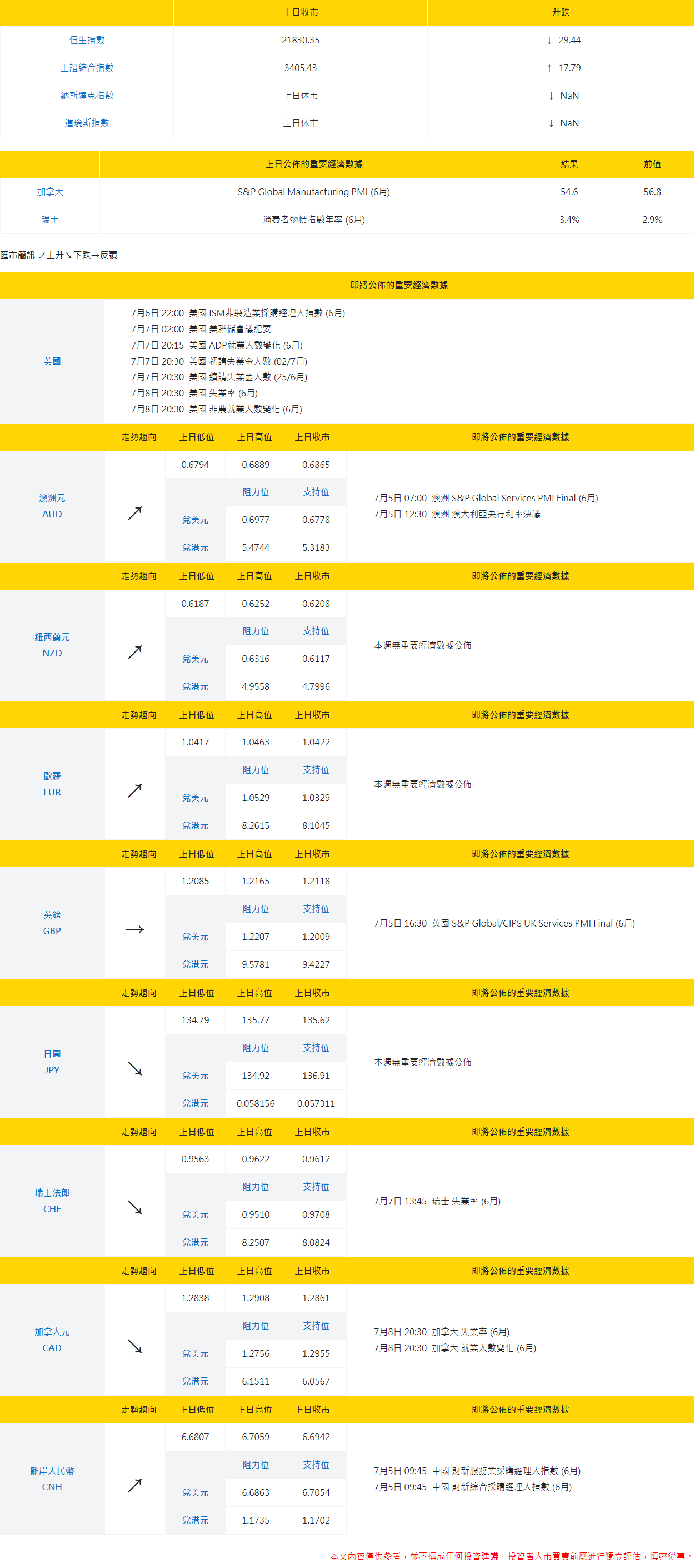 大丰银行:今日外汇走势分析和投资策略(2022年7月5日)