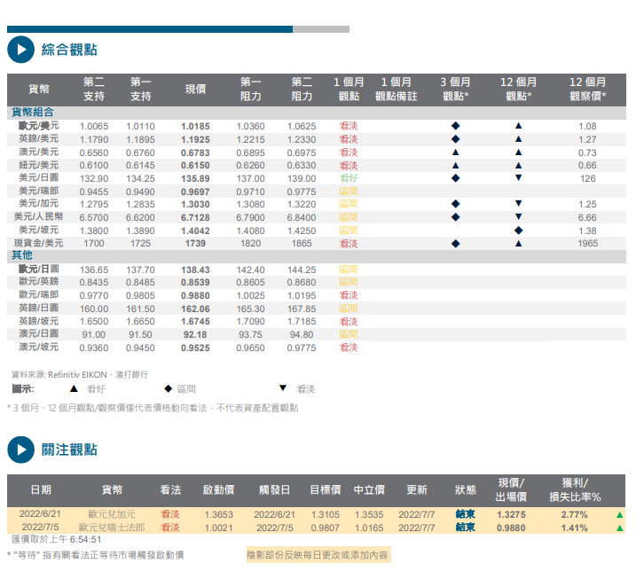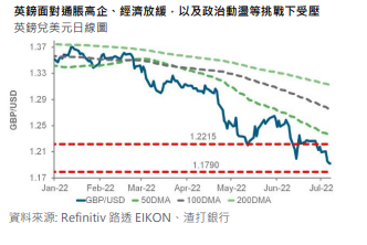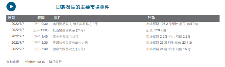 美国联储局 6 月份会议纪录强化了市场对当局决心将利率上调至收紧水平以压低通胀的预期。对於全球经济增长放缓的担忧提振美元走势,欧元则仍然受压。欧元兑美元正向着 1 算水平发展,支持位料在於 1.0065,若失守的话可能会测试 1.00 水平。英镑兑美元亦下跌,英国有多名官员辞职,首相约翰逊亦可能在数日内面临另一次的信任投票。