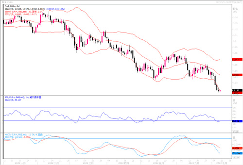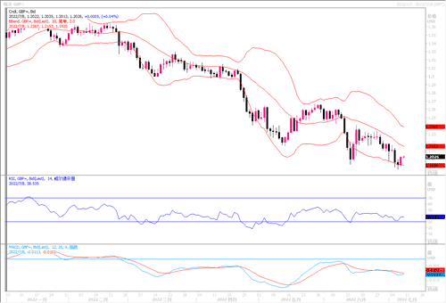 根据欧洲统计局本周三发布的数据显示,在物价飙升的情况下,欧元区5月零售总额略有上升但仍低于市场预期,5月食品、饮料和烟草支出已连续第二个月削减。随着天然气供应在欧洲越来越紧张,市场对欧元区经济衰退担忧加剧。经济放缓前景也让人怀疑,欧洲央行是否有能力充分收紧货币政策以遏制创纪录的通胀。在欧洲经济日益黯淡之际,欧央行正面临一个两难境地:它试图在不加剧经济放缓情况下遏制通胀,然而数据却显示,经济放缓趋势正越来越近。在各国央行大举加息以及全球经济增长令人失望背景下,风险资产将继续面临下行压力,并引发投资者进一步涌向美元避险。从技术图形上看,短线小时图上超卖严重,技术指标出现调整态势,日内上方首要阻力在1.0220,进而在1.0260-70;而下方支撑分别在1.0130和1.00070。今天是周五,须防范欧元空头回补反弹风险。