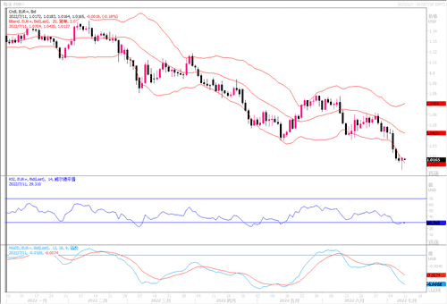 受欧元区经济衰退风险上升和美元强势影响,上周五(7月8日)欧元兑美元汇率一度跌至1.0072,创近20年来最低水平,无限接近于平价,而今年以来欧元兑美元汇率跌幅逾10%。市场人士认为,欧央行期望通过加息遏制通胀,又担心加息导致一些南欧成员国债务压力加大,因此瞻前顾后,行动迟缓。欧央行的紧缩步伐远远落后于美联储,从而令欧元汇率承压。现在分析界分析认为,随着能源危机加剧和经济增长风险显著增加,欧元未来或将继续面临着压力。这种局面,或会迫使欧洲官员不得不重新评估加息的幅度。上周五盘中接近1.0072的关键费波纳奇技术位这是从0.8228记录低点升至1.6040记录高点的76.4%回档位,这是对这一涨势进行修正的界限。目前从日线图上观察,似乎有底部锤子线出现,若日内能收出阳线体,则不排除在欧央行将于7月加息预期的推动下,欧元或可短线出现反弹调整的机会。上方初步阻力在1.0220,进而在1.03附近。而下方若是跌穿周五创下的低位1.0072,则平价威胁近在咫尺。