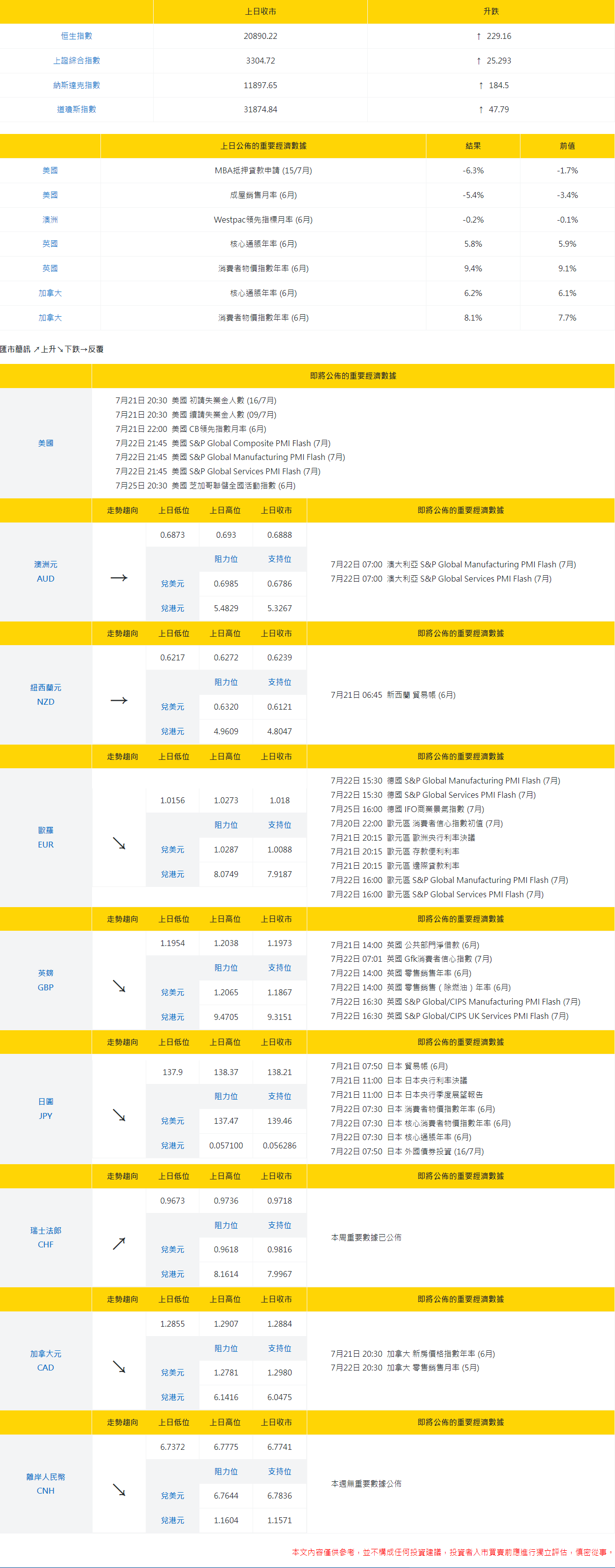 大丰银行:今日外汇走势分析和投资策略(2022年7月21日)
