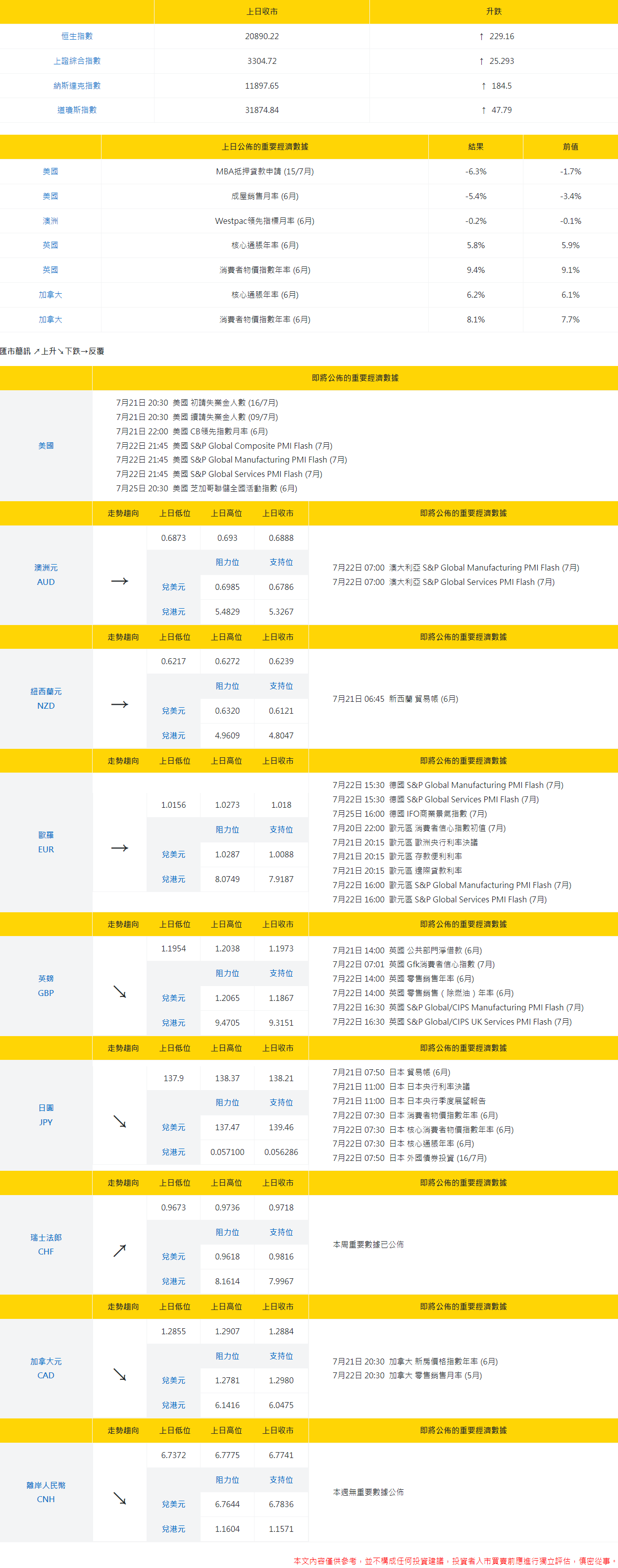 大丰银行:今日外汇走势分析和投资策略(2022年7月22日)