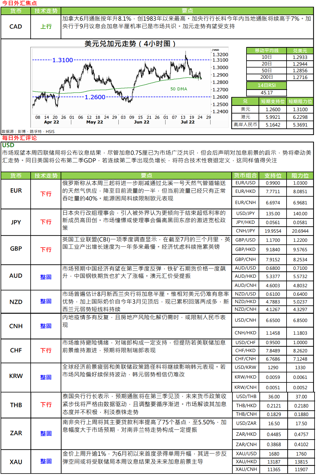· 南韩第二季国内生产总值(GDP)较前一季度增长 0.7%,按年增长 2.9%,两者皆高于市场预期。经济增长加快主要是受惠个人消费者的开支上升,但是实质出口却下降,能源和大宗商品价格上涨、全球央行收紧货币政策、疫情封锁加剧了供应链中断及全球需求减弱等因素,仍然造成对南韩出口的不确定因素。