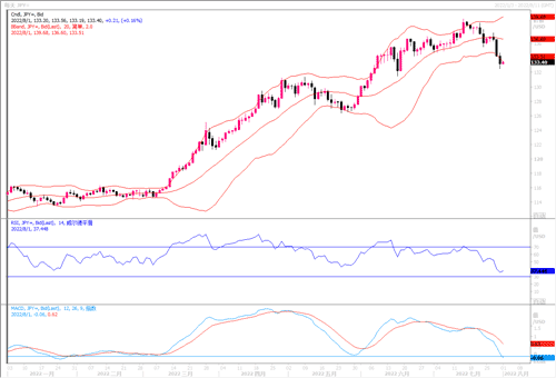 日元周五录得近三年来最佳单月表现,因对经济成长的担忧令美国公债收益率大幅下滑,并将投机客挤出日圆空头仓位。在周五的亚洲交易时段,买盘浪潮将日元推升约1%,延续周四涨势。7月份日元兑美元累计上涨2%,并触 及六周高点132.50。日圆经常跟随美国公债收益率的走势,尤其是10年期公债收益率。美债较日债收益率的巨大利差吸引日本投资者持有美国公债,也吸引其他投资者做空日元兑美元。但这一利差已在7月缩小了约30个基点,为2020年3月以来的最大变动。上周四数据显示美国经济上季度意外萎缩,周三美联储指出经济放缓可能会放慢升息脚步。为此,一些交易员正在减少押注日元走软的头寸,因为加息的风险在降低。现在日元空头回补的交易将会成为8月交易的主调。日线图上,美元兑日元已渐渐下行在各短期均线下方,技术指标继续向负向区域延伸的势头明显;布林带喇叭口又扩张趋向。美日若进一步回落,下方将考验130整数关口的支撑。