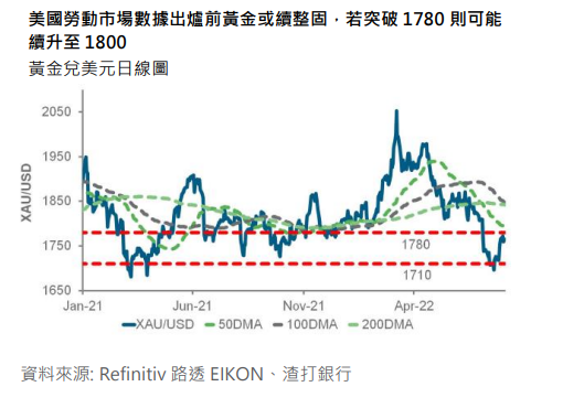 在明天美国非农就业数据公布之前,贵金属可能会进一步筑底,结果将决定金价接下来的走势。黄金的关键支持位在 1710.