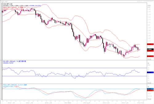 周一(8月8日)的外汇市场上,美元回吐因周五强劲非农引起上升的部分涨幅。欧元兑美元仍保持着窄幅的波动,目前报价于1.02附近。在当日,根据德国市场研究机构SENTIX最新报告显示,欧元区8月份投资者信心指数录得-25.2,较前置-26.4虽有小幅回升,但仍低于预期。SENTIX投资者信心指数是衡量欧元区经济健康状况的领先指标。报告称欧元区经济下行压力仍很大,表现在消费意愿低迷、通胀高企、能源价格居高不下,都导致投资者信心未出现明显改善。而欧央行业已启动的加息,恐也会对欧元区经济带来不利的影响。为此,欧元近期的走势也是颇费踌躇陷入极度窄幅波动之中。日线图上,欧元兑美元勉强维持在20期均线上方,但仍远在中长期均线下方,K线基本处在有限区间内(1.01-1.03之间)横盘整理的走势状态之中。若基本面给不出大的刺激消息,欧元兑美元近阶段怕是难以脱离出这种窄幅区间横盘的走向。