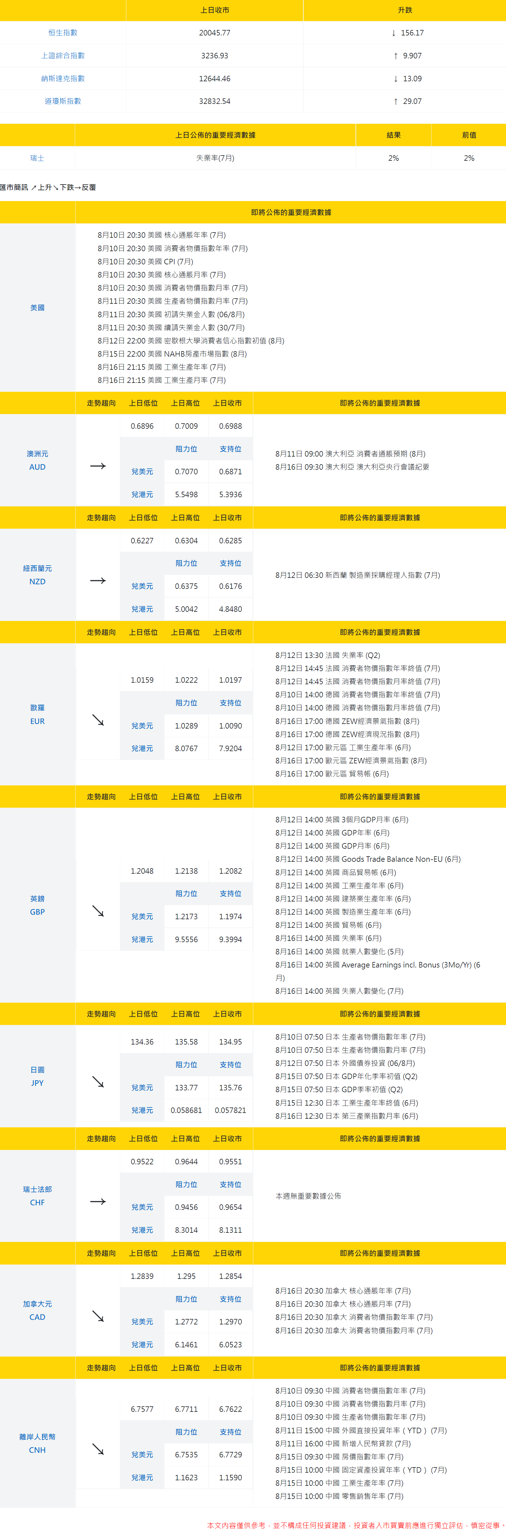 大丰银行:今日外汇走势分析和投资策略(2022年8月9日)