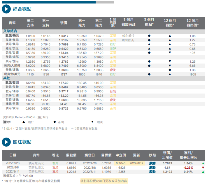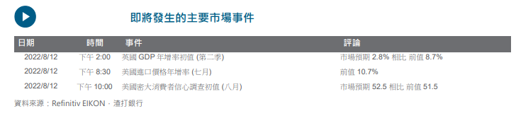 10年及30年期美债息在生产物价逊预期下仍上升美国生产者物价按月下跌0.5%,为两年来首度下跌。整体生产者物价指数从6月按年的11.3%下降至9.8%,升幅减弱的幅度高於预期,。尽管本周消费及生产者物价数据疲弱,但30年和10年国债收益率隔晩仍跃升逾10个基点,10年期国债拍卖反应淡静,市场波动亦推动债息上升。美国2年期国债收益率变幅不大基,令10年与2年国债的孳息曲线倒挂程度有所舒缓利。我们今天将留意美国密大消费者信心指数,其表现可能会自6月历史低位持续反弹。