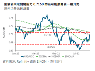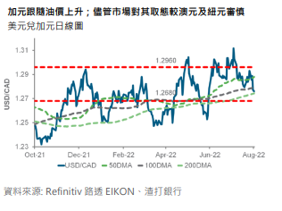 加元因市场情绪改善及油价上升而走高,国际能源署亦上调对2022年石油需求增长的预测。投资者由於忧虑加拿大央行的进取收紧政策可能会导致经济出现更大的衰退风险,令加元近期升幅较澳元及纽元温和。加元支持位料在於1.2680水平。