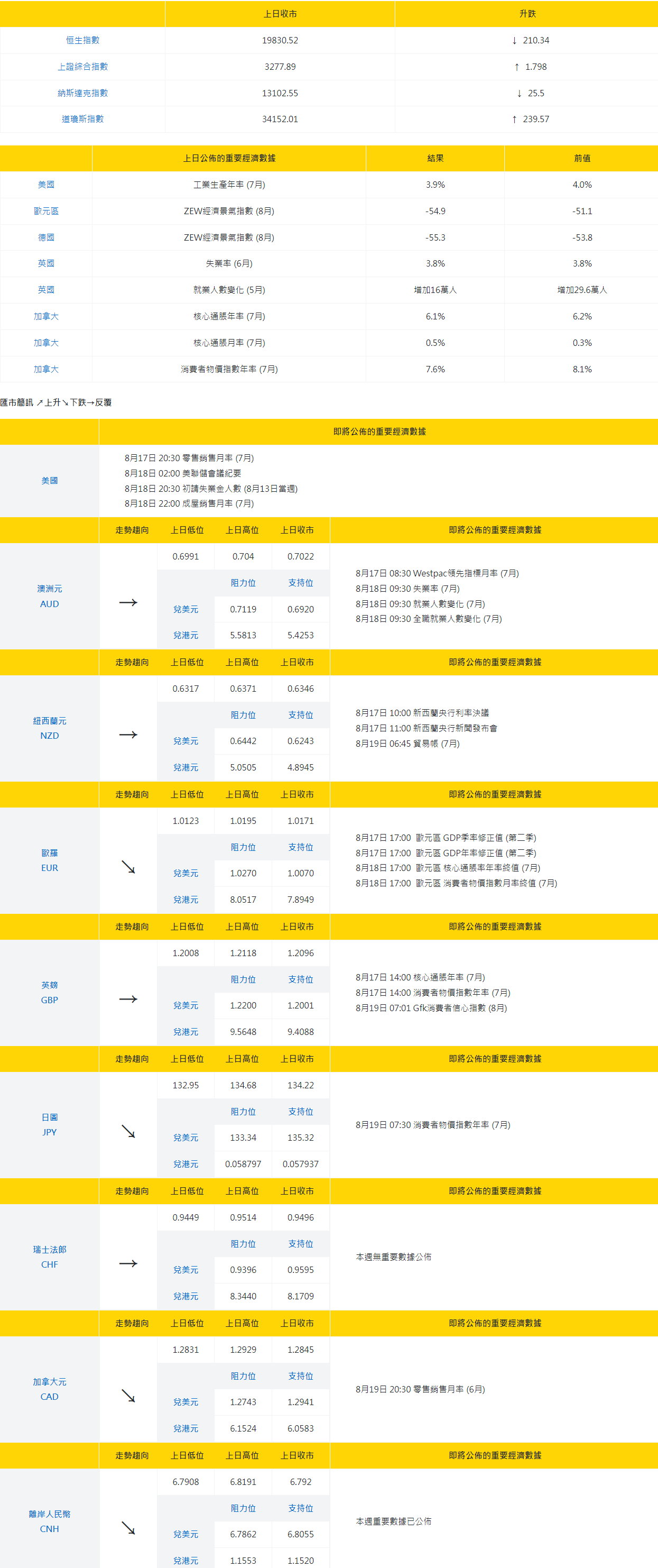 大丰银行:今日外汇走势分析和投资策略(2022年8月17日)