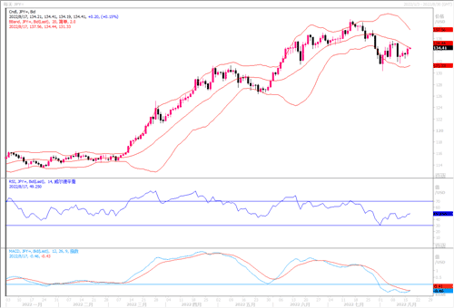 因预期美联储将维持鹰派政策,美债收益率上升,提振美元,而美国零售巨头的强劲业绩提升风险情绪,也提振美元。美银认为,美元兑日元或延续上涨。随着油价下跌和日本公司对外并购活动停滞,日本企业的日元供应量目前可能已经见顶。然而,投资者对美元的需求可能会延续,因美联储加息提振美元和日元利差及对冲成本。美元兑日元周二收盘上涨0.7%,收盘于134.21。日图继续测试MA100,力度有限,暂时看回调整理。4小时图波动有限,下方存在支持。小时图先抑后扬,但力度不强。整体上,美元兑日元似乎仍处在回落后的反弹整理走势中。上方留意135.00的阻力强度,若上破,美元兑日元存在冲击前高的欲望。但若继续受阻,则美日将延续高位回落态势。