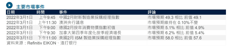 我们预计澳洲储备银行今天会议不会有重大变化,它是自乌克兰被入侵後首间十国集团央行举行货币政策会议。但澳元兑美元在临近0.7285 和 0.7330 之间的阻力区仍然展现动力,若央行意外地取态鹰派可能会触发空仓回补,从而推动测试阻力水平。我们继续看好澳元。