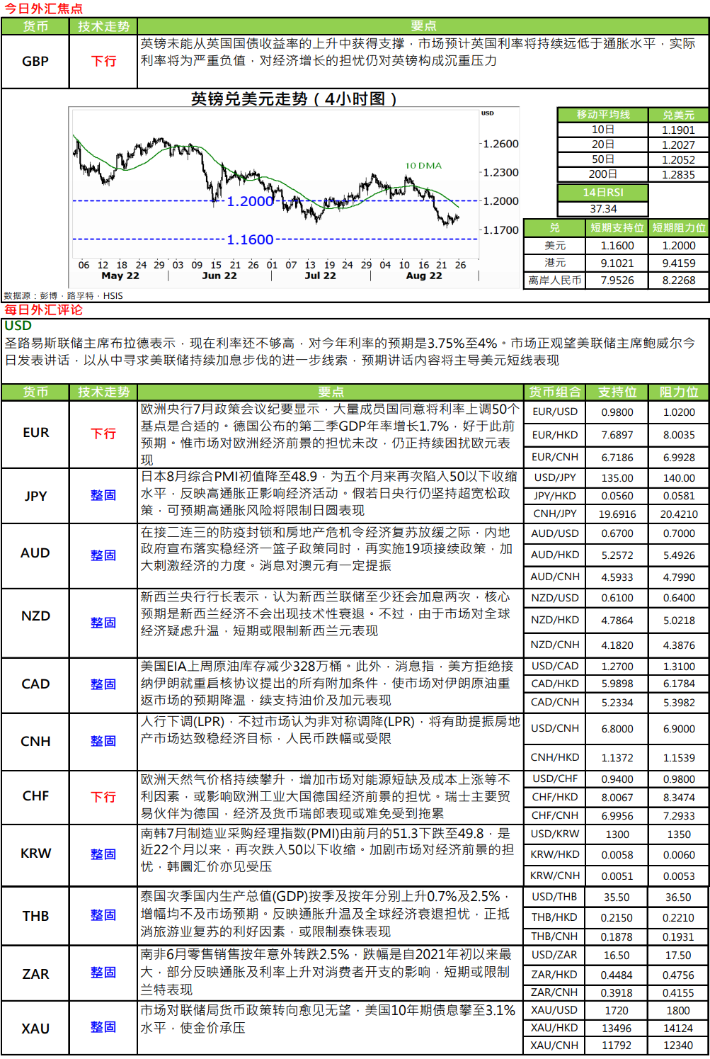 · 日本 8 月份东京地区通胀(CPI)按年上升 2.9%,至于核心 CPI 按年亦高企于 2.6%,创 2014 年以来高位。由于东京地区通胀对全国通胀具一定前瞻性,当日本通胀率不断走高而日央行依然采取宽松的货币政策,这可对日圆汇价相当不利。