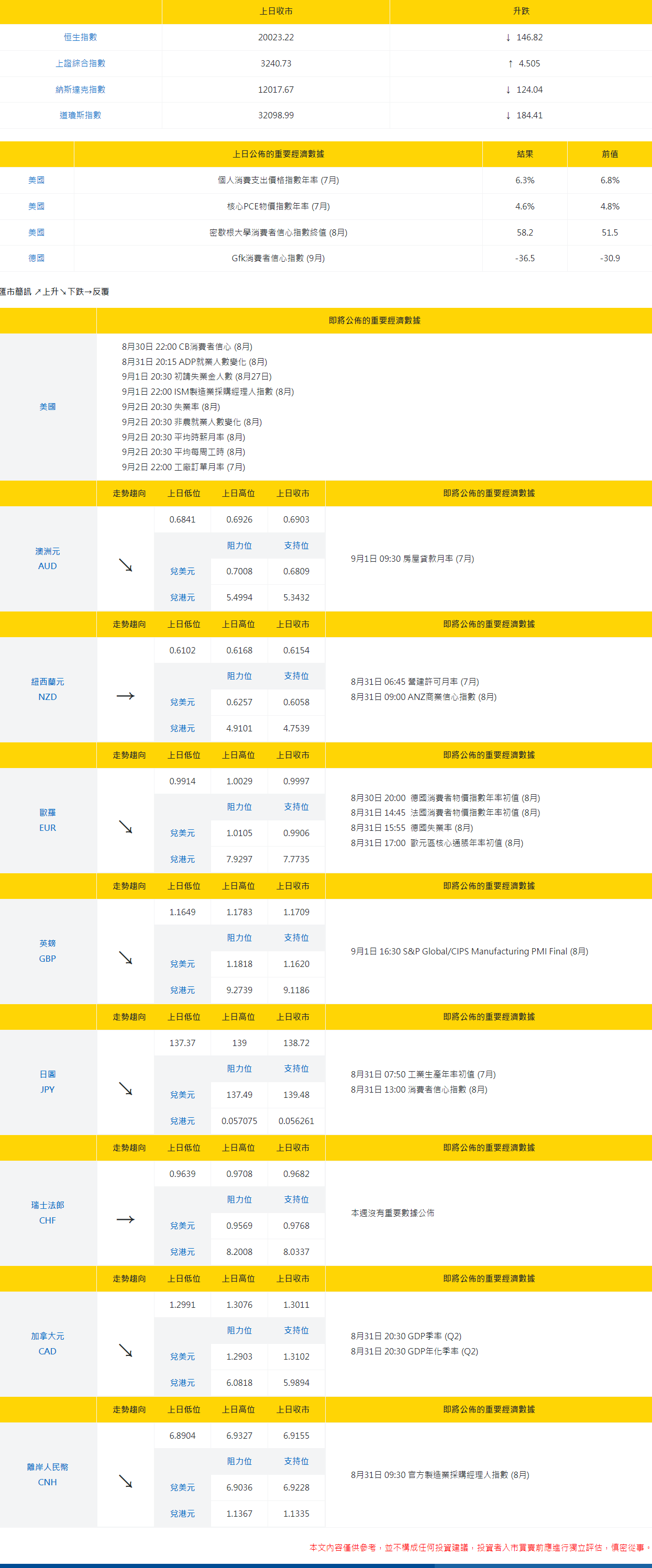 大丰银行:今日外汇走势分析和投资策略(2022年8月30日)