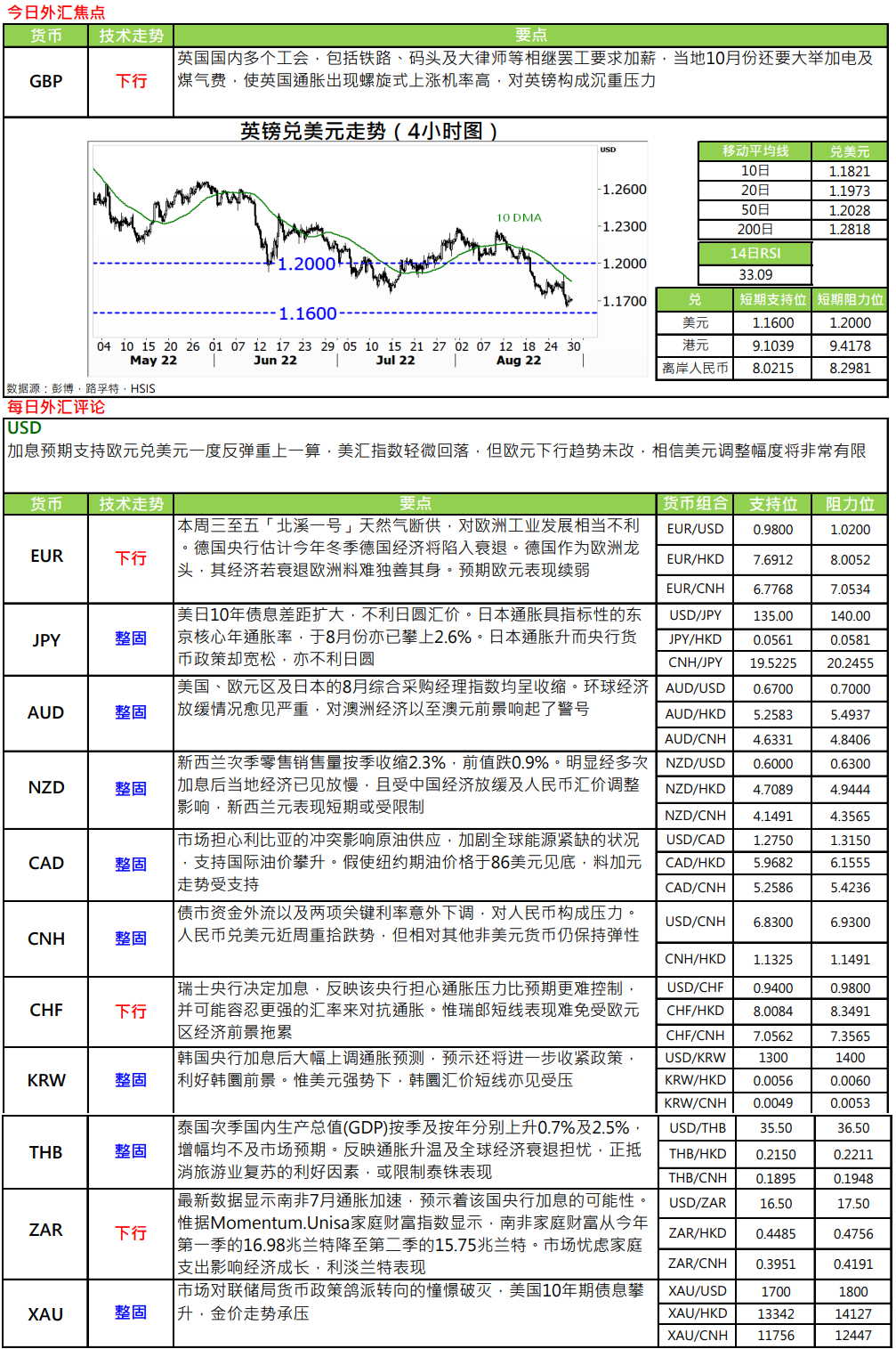 恒生银行:今日外汇黄金市场评论及操作建议(2022年8月30日)