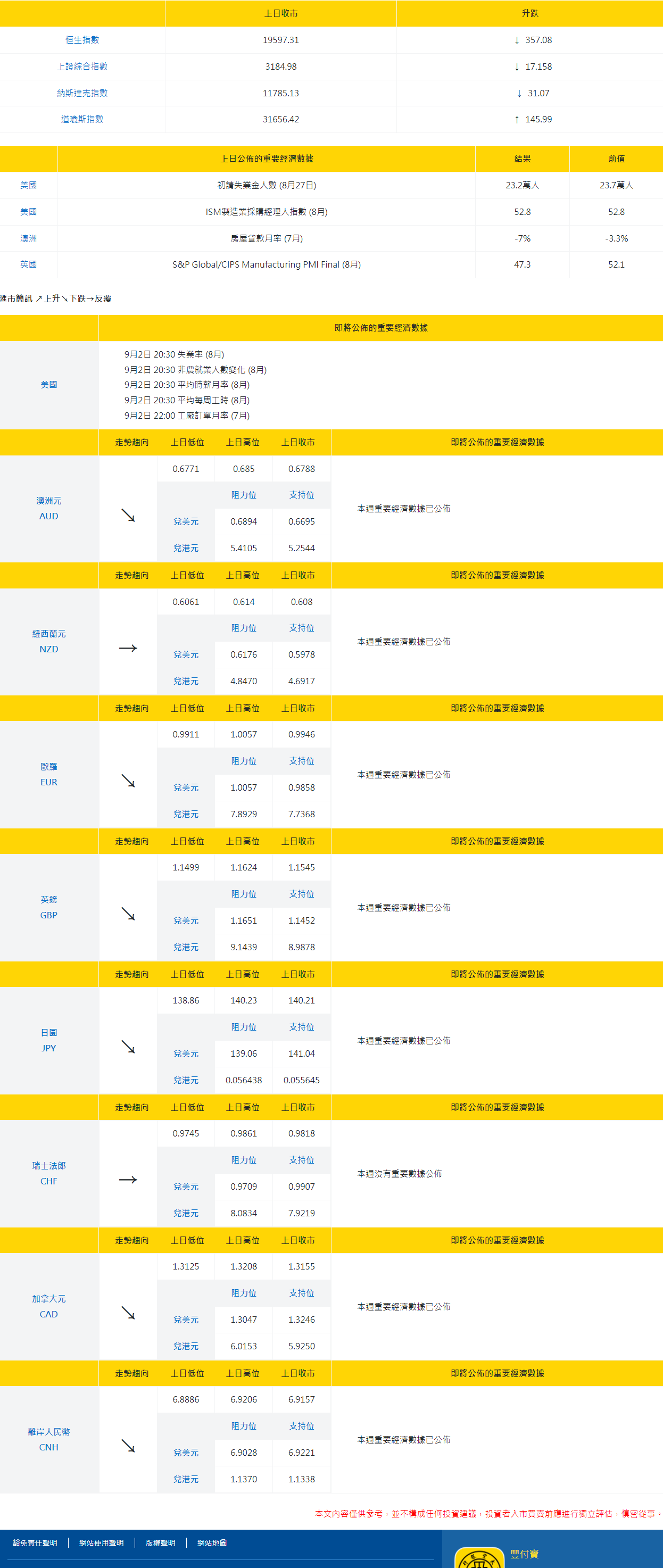 大丰银行:今日外汇走势分析和投资策略(2022年9月2日)