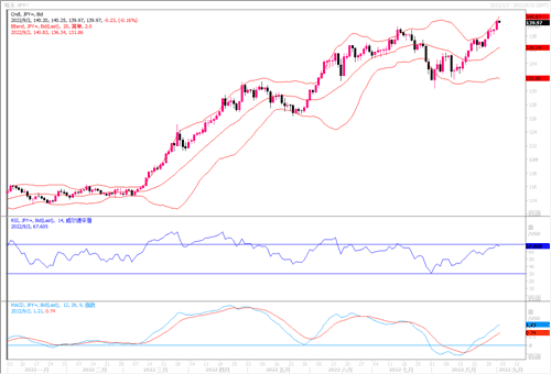 美元兑日元周四攀升至24年来的最高点140.25,且高收盘于140.20水平。主要的驱动力仍然是日本和美国之间的利率差异,甚至昨日的走势只是跟随隔夜美国利率的升势。10年期美国公债收益率触及3.219%的两个月高点。而日本 的收益率曲线控制政策使其10年期公债收益率仅为0.24%。在日元汇率跌至24年新低后,日本财务省一名高级官员周四表示,日本正以“高度紧迫感”关注汇市走势,不乐见汇率快速波动。因此须提放日央行在汇率上有干预行动。日线图上,美元兑日元沿着短期均线不断攀高,MACD 红色动能柱继续向上发散,RSI进入超买区域,显示美元买盘动能持续增强不衰。小时线图上,存在超买调整姿态,料回落幅度有限,除非日央行有实际的市场干预行动。此外,须留意今晚非农带来的影响。下方初步支撑提升至138.80,进一步的支撑在138.00。上方若是继续有效穿透140.00水平,进一步目标将是1998年曾到过的高点147.66。
