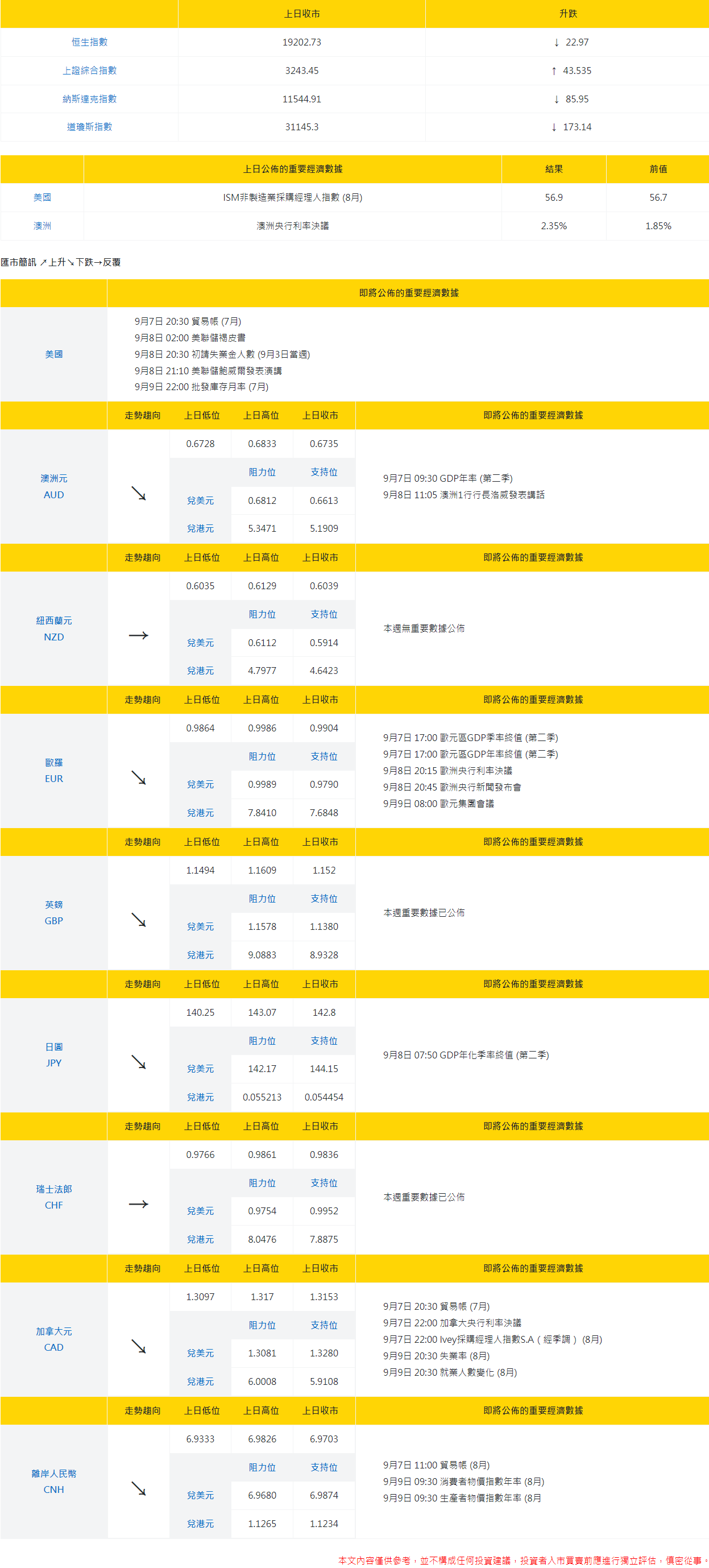 大丰银行:今日外汇走势分析和投资策略(2022年9月7日)