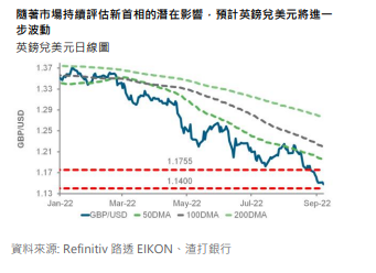 英镑最初受市场对新首相上任的乐观情绪带动而上升,但其後投资者对当地新的经济支持计划可行性有所担忧,令英镑收窄升幅。英镑关键支持料在於 2020 年低位 1.14 水平附近。