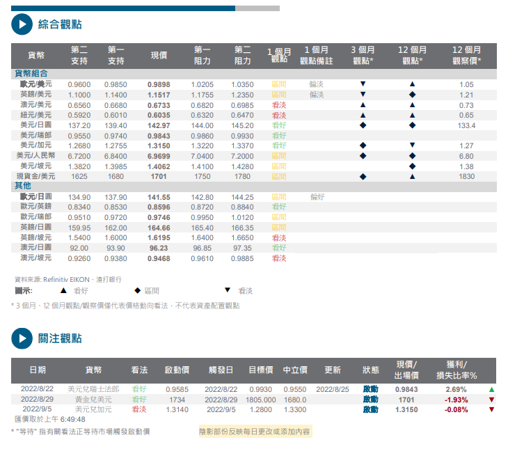渣打银行:外汇市场走势分析及评论2022年9月7日