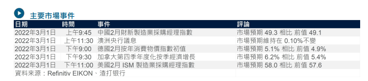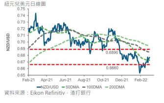 我们预计澳洲储备银行今天会议不会有重大变化,它是自乌克兰被入侵後首间十国集团央行举行货币政策会议。但澳元兑美元在临近0.7285 和 0.7330 之间的阻力区仍然展现动力,若央行意外地取态鹰派可能会触发空仓回补,从而推动测试阻力水平。我们继续看好澳元。