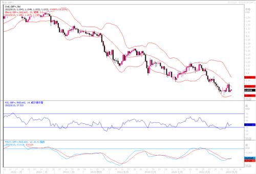 周三(9月14日)英镑兑美元上涨0.5%,至1.1546美元,脱离上周创下的三十年低点1.14070美元。周三公布的官方数据显示,燃料价格下降导致英国8月消费者物价涨幅意外下滑。在消费者物价指数(CPI)增幅创下40年新高后,最新数据让英国家庭和央行稍稍松一口气。英国8月CPI较上年同期的涨幅从7月的10.1%降至9.9%,接受路透调查的分析师原本预期CPI涨幅将进一步上升至10.2%的新高。通胀得回落可能会稍微令英国央行在下周的加息幅度上不必如预期般的剧烈加75个基点。总之,在加息控通胀和防经济衰退方面,英国目前都处于不利的局面。技术层面上,日图未能守稳MA20并下破多根均线,短线反弹宣告失败。4小时图大阴线回吐此前反弹大部分涨幅,MA5/10死叉或提供打压。小时图小幅上探1.1735上方水平后猛烈下跌,当前窄幅整理,缺乏反弹动能。本周内预计镑美将宽幅震荡于1.14-1.18的区间内。