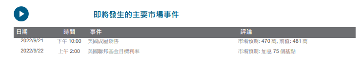 美国10年期国债息率突破6月高位3.5%,收报11年以来的新高3.56%.昨天的突破可能会测试下一个阻力3.76%,而目前3.5%的水平为新的支持。对政策敏感的2年期国债息率也温和上升至接近4%的水平,今晚美联储会议上任何更为鹰派的表现都可能推升美债息率。市场预计美联储将於今日会议上加息75个基点。投资者还将密切关注美联储主席鲍威尔的谈话以及对经济增长和通胀的预测,作为推测未来一年加息路径的指引。经济数据方面,美国新屋动工按月增长12.2%,减缓了抵押贷款利率上升对楼市冲击的担忧。