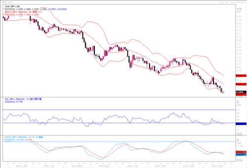 英镑兑美元周四(9月22日)继续停留在历史阶段的低位附近。此前英国央行提高关键利率的幅度低于货币市场预测的水平。英国央行周四加息50个基点,将指标利率从1.75%上调至2.25%,并表示将继续对通胀做出 “必要的有力反应”,尽管经济进入衰退期。显然,这是一个鸽派惊喜,因为市场几乎完全消化了加息75个基点的预期。不过,三名货币政策委员会委员支持75个基点的事实可能会阻止对英镑曲线的大幅鸽派重估,这可能是英镑在决策公布后没有大幅下跌的原因之一。日线结构跌破了来自1.215的下行趋势线支撑,价格更是直接刷新到1.121的低点,整个节奏完全处于失衡的一种状态中。但毕竟是数据带来的冲击,我们还是要预防虚破的风险,日内先关注1.135转换压力,至于能否重回1.135的上方,将决定着英镑接下来的命运。