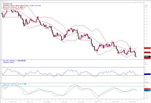 本周美联储如期加息75基点至3.0-3.25%;年内第五次加息,也是其连续第三次加息75个基点,累计加息幅度300个基点,创1981年以来的最高密集加息幅度。这虽在预期之中,全球金融市场还是闻声失色;谁也没想到,美联储鹰派立场超出预期,其会将终端利率设定在如此之高(4.6%)的水平。加息落地后,美元表现有点“上蹿下跳”的走势形态。而欧元兑美元也因为美联储的大举加息和对今后加息表示出的鹰派态度而继续承压维持在历史阶段的低位中。欧元兑美元日图接连跌破0.9950和0.9860,刷新20年低点,随机指标仍看跌,可能继续受5日和10日均线死叉打压。小时图短期均线空头排列,仍看跌。日内留意0.98整数关口的支撑,若跌破下方继续往低处探。上方的话,即便有反弹料力度有限,阻力位分别0.9870和0.9950。