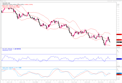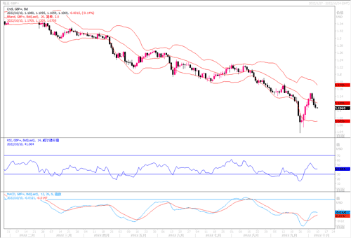 上周五的数据显示,9月非农就业岗位增加了26.3万个,美国9月失业率也意外下降;本周四将公布的9月通胀数据预计将显示整体通胀年率为8.1%,而决策者看重的核心通胀率预计为6.5%。数据进一步说明美国经济没有崩溃,而通胀率居高不下,增强了对美联储加息的押注。油价攀升和地缘政治紧张局势也令人对经济增长感到担忧,对欧洲能源进口国的货币、甚至是对增长敏感的澳元等出口国货币造成了压力。欧元/美元上周五跌破0.98美元,最新报0.9733美元。从基本面来看,美国市场应该继续处在利率上升阶段,股市继续吸引外国投资者。这意味着美国可能会吸引资本,这对美元有利。只有美联储政策转向,以及/或其他对风险资产提供持续支持的因素出现,欧元或许方有望扳转当前的颓势。日图在1.0000平价关口受阻连续两日下跌,随机指标倾向进一步下行。4小时图形成次高低点,仍看跌。小时图震荡下行,空头仍占主导。在空方推动下,欧元兑美元有继续测试前低0.9536的可能性。上方平价附近仍是当前该货币对的强大阻力所在。
