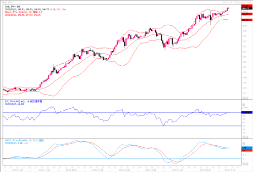 美国9月生产者物价增幅超过预期,进一步提振了美元兑日元,在美国PPI数据公布后,美元最高升至146.98日元,为1998年8月以来最强。纽约尾盘美元上涨0.7%,报146.85日元,为连续第五个交易日上涨。日本官员在9月22日进行了自1998年以来首次阻贬日元干预,当时日元兑美元水平在145.90。而隔夜市场上日元贬值幅度远朝上次干预的水平,日本央行却按兵不动,这只只能证明了日本央行并没有捍卫某个特定水平,而是在解决波动性问题。日本央行所不希望看到的是日元波动率过大。有鉴于此,料投机交易将会继续逐渐推高美元兑日元的汇率水平。只要美联储的加息周期未现拐点信号之前,即便日本央行有再次干预行动,预料暂时还是打不散看涨美元兑日元的交易行为。但短线上还是要警惕防范日央行干预所带来的短暂大幅下跌的风险。上方继续测试的高度目标将会是148-150区域。
