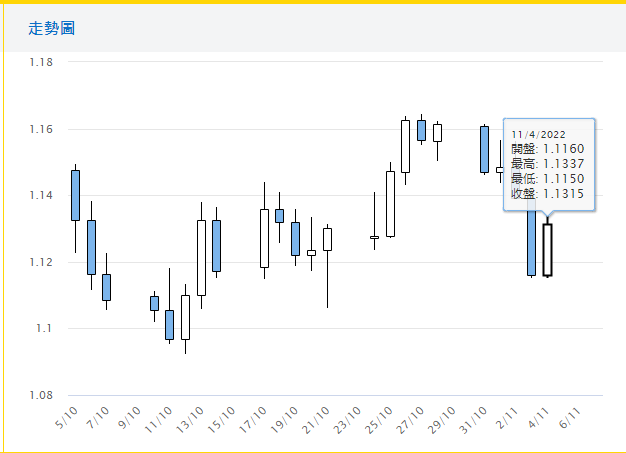 上周英伦银行加息75基点後表示利率峰值将低於市场预期,消息一度打压英镑走势,英镑兑美元一度跌至1.11水平。及後,美国公布的非农就业数据参差,显示美国新增就业岗位数目放缓,市场估计美联储加息进程将会放慢,美元下跌,英镑回升至1.13水平。 後市方面,本周英国公布九月GDP数据,在英伦银行加息、英国国内高通胀、经济成长放缓的情况下,预料英镑走势继续受压。