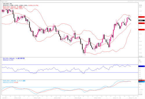 周二(12月6日),日内欧元对美元继续微跌0.26%,收盘于1.0464。欧盟统计局最新公布的数据显示,欧元区的通胀水平在11月份有所回落,数据显示欧元区11月HICP同比上涨10%,低于预期以及前值得10.6%,是一年来首次放缓。与此同时,欧元区10月生产者物价指数PPI同比与环比也有所下降,进一步增强了市场对于欧元区通胀水平有望见顶的预期。这引起了市场的疑虑,就是12月份欧央行还是否会大举加息。尽管欧元区通胀水平在11月出现了一定程度下降,但依然维持在两位数的高水平,与此同时近期欧央行众多管委们都发表鹰派言论,因此欧央行在12月份应不会停下加息的脚步。欧元近两个交易日的回落,更大程度上应属于冲高技术调整而已。日图20日均线仍向上,短线在1.0600一线受阻修正涨幅,略倾向进一步回调风险。4小时图继续在小幅回落寻找稳固的支撑水平,各类技术指标也是随之出现延续下行之态。目前日线图上20日均线水平1.0380附近的支撑较为关键,若跌穿则欧元重回跌势的风险增高。相反若在1.0380-1.0300区域能站牢,后市继续走高仍可期。