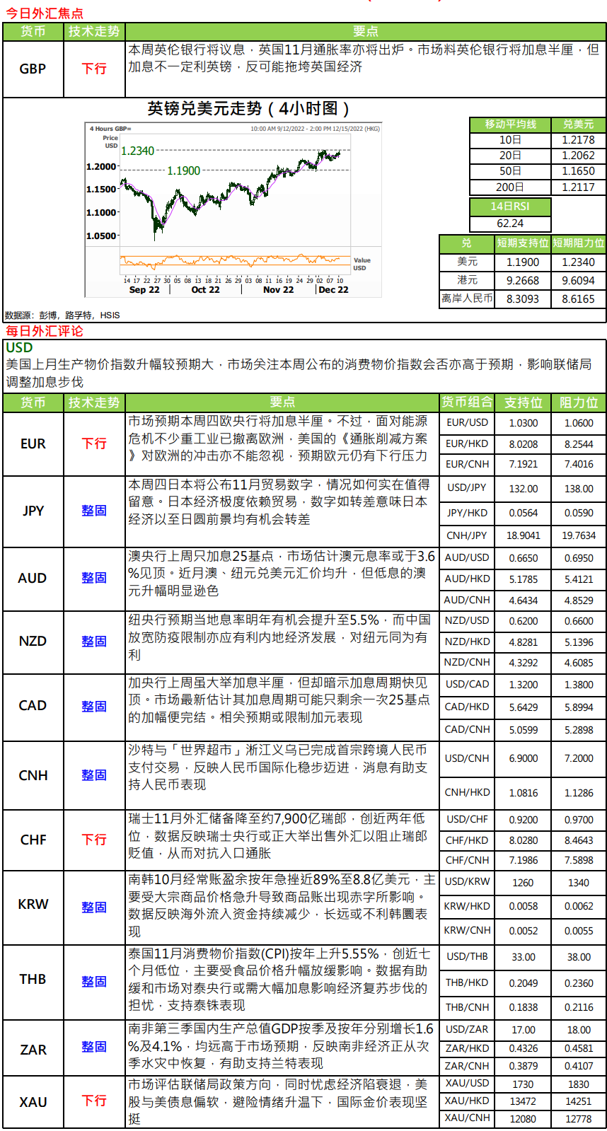 恒生银行:今日外汇黄金市场评论及操作建议(2022年12月12日)