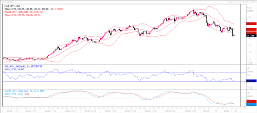 周三(12月21日)的外汇市场上,美元兑日元继周二走出一波大跌后,在空头回补交易带动下有所回升,当日升幅0.56%,盘中最高回到132.52,收盘于132.43。日本央行周二意外的改变货币政策举动,提高了市场对于日本央行也行将加入加息大军的高兴奋预期,为此部分投资者开始押注日元更大价值回归之旅,甚至认为日元将会是明年最强的货币之一。但是我们也还是要提高警惕,若日本央行在加息上还是迟迟未有实际行动的话,且美日利差依旧维持在较高的水平上,日元进一步上涨空间将受到抑制。日线图上,美元兑日元进入大跌后的空头回补调整中,各类技术指标朝下行。不出意外的话,经小幅回补调整完毕后,大概率美日将会继续向下测试130.00关口的支撑,若跌破将有望向公允值125发起冲击。