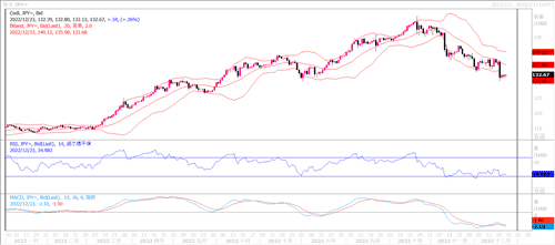 周四(12月22日)的外汇市场上,美元兑日元走势窄幅,收盘于132.43。尽管日本10月份会议纪要显示,委员们认为目前没有必要立即改变货币政。但有一位成员表示,尽管没有立即调整政策的必要,但日本央行必须密切关注宽松政策的副作用,研究物价上涨将如何影响家庭行为和工资。日本第二大券商大和证券的负责人表示,日本央行本周采取意外行动后,有可能允许国债收益率进一步攀升。大和证券社长中田诚司称,央行将10年期国债收益率上限翻一番至0.5%表明政策方向出现“温和变化”。他预计,日本央行明年会将上限上调至0.75%。日本央行被普遍预期明年在货币政策上将渐渐进入收紧阶段。一直来困扰日元的息差炒作因素,将渐渐被移除。日线图上,美元兑日元明显开始远远受压于各短期均线下方,短线或继续存在超跌后调整的走势,大整体上美元弱势明显。继续留意130.00整数关口的支撑,若跌穿,下方目标瞄向128-125区域。