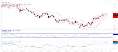 周三(12月28日),欧元对美元继续窄幅交投,汇价整体上维持在1.06之上。欧洲央行副行长路易斯。德金多斯日前表示,欧元区面临“非常困难的经济形势”。他强调,在明年第二季度经济重新开始增长之前,欧元区正在经历一场“短暂而轻微的衰退”。尽管经济面临下行压力,但鉴于通胀仍然居高不下,欧洲央行也在继续紧缩的政策。德金多斯在被问及借贷成本上升到何种程度时重申了欧洲央行的说法,即这将“根据即将到来的数据,通过逐次会议”来决定。欧洲央行一众官员在加息上的坚定态度,是近期支撑欧元的基础。从技术层面上看,尽管震荡指标并未显示欧元兑美元多头产生明显优势,但由50期均线和11月下旬以来的向上倾斜趋势线组成的1.06支撑汇合点看似支撑还是比较牢靠。但是上方近期的初步阻力1.0670一直未能有所突破,只有彻底突破,或方能吸引欧元多头的大胆入场。相反,若果汇价跌落1.03之下,则欧元兑美元恐帕再陷入下行之中。