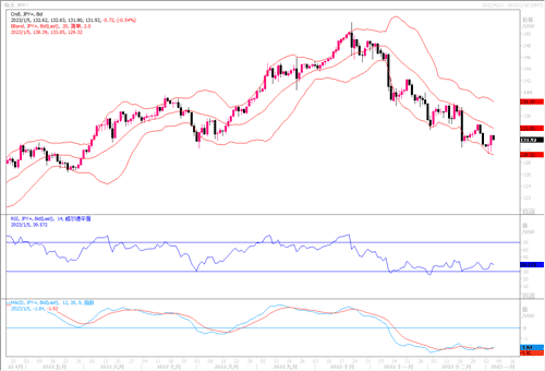 周三(1月4日)英镑兑美元上涨0.74%,盘中最高触及1.2087,收盘在1.2055。前个交易日英镑兑美元的下跌有点过度,并非特别合理,这是由清淡交易中的投机资金流所推动。周三当天,由于美联储公布的12月份会议纪录毫无新内容,美元回软英镑又回到了比较现实的水平。但是对于英国经济前景感到暗淡的情绪还是在市场上弥漫着,英国商会(BCC)周三表示,英国企业对2023年的前景感到悲观,因为他们面临着能源费用激增的可能性和脱欧后持续的贸易困难。因此,英镑兑美元也暂时得不到什么更好的利好因素来支撑其上行。从技术图形上观察,在日线级别图上,英镑兑美元已坠落在布林带通道中轨之下,技术指标倾向向下摆动。若汇价不能重返布林带中轨1.2130水平之上,则英镑兑美元短期内还是无法扭转其下行的态势,且一旦跌穿1.19-1.1880支撑区域,下行回撤幅度将加大。上方只有突破1.2130、1.2180这些阻力水平,方有望重回到上升的轨道之中。