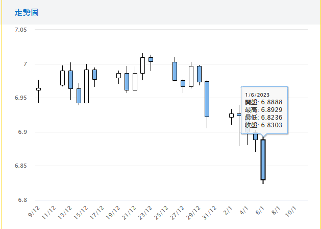受惠去年底起中国防疫松绑政策,人民币反覆上升,上周离岸人民币上升至4个多月高位6.8460。 预期本周初人民币仍可借助疫情政策而受惠,但周四公布的12月份PPI及CPI数据预期仍属低水平,有助人民银行续推宽松政策,人民币或借势回落,离岸人民币或跌回7算水平。